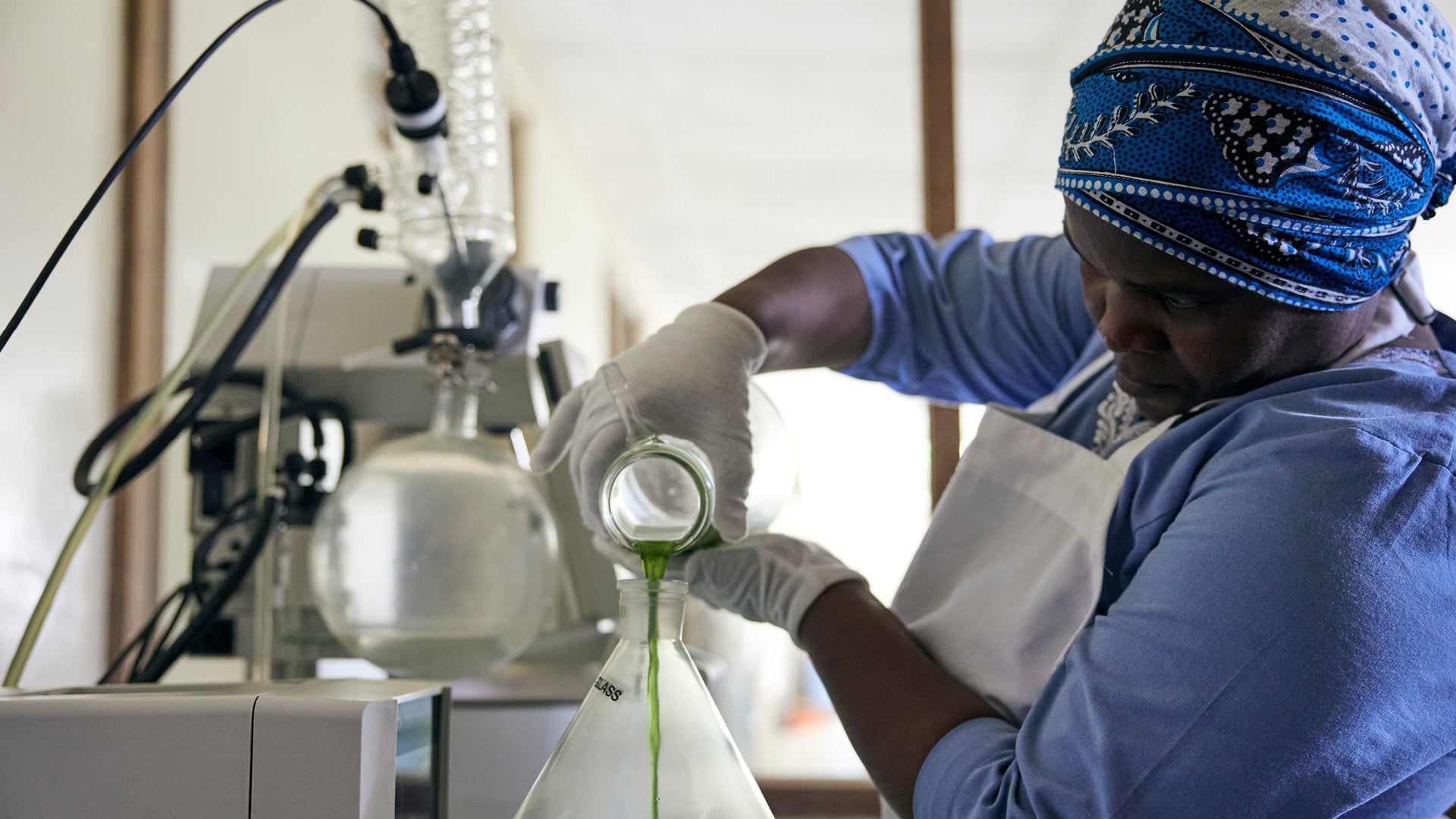 As trained product artisans, the Mwani Zanzibar Mamas create each batch of MW Macroalgae Extract™. They start by drying seaweed harvests under controlled atmospheric conditions, to preserve bioactivity. Then, they macerate the seaweed by hand at sub-zero temperatures, followed by 24-hours of agitation. The resulting solution is triple-filtered and evaporated to create a highly concentrated extract that is infused into each small crafted batch of our product skincare formulations.